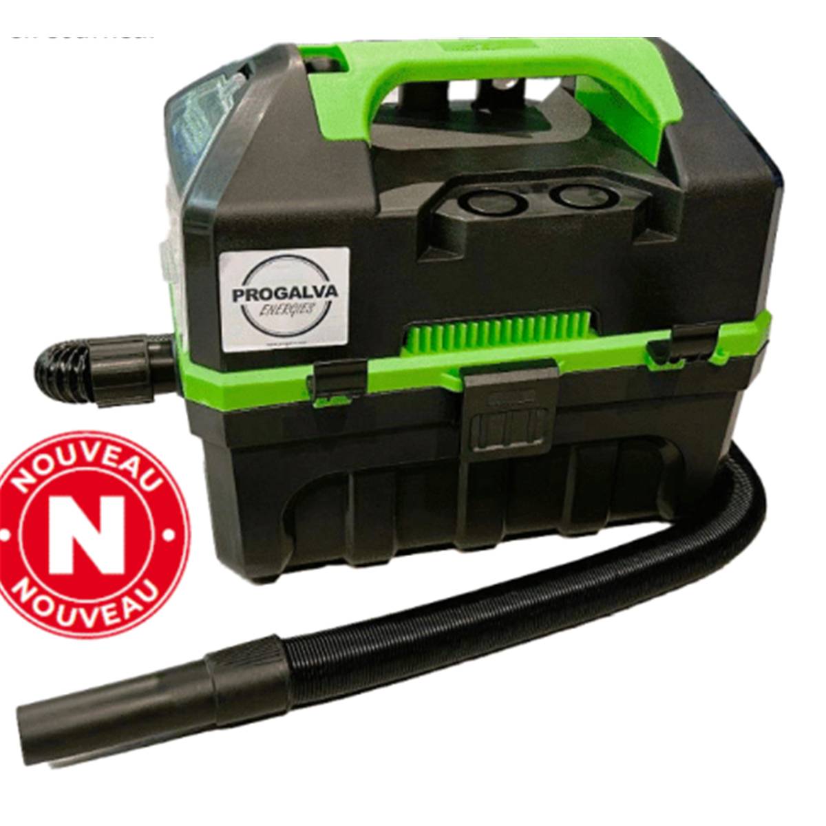 Aspirateur eau, poussières et souffelrie à batterie. Livré avec batterie.Cuve de 10 litre. Moteur bypass. Dépression : 1100 mm/CE. Débit : 40 m3/h. Poids : 5 kg. Dimensions : 330 x 250 x 390 mm.. Filtre : HEPA. Décibels : 79 dB. Batterie 5Ah-20volt et chargeur rapide.