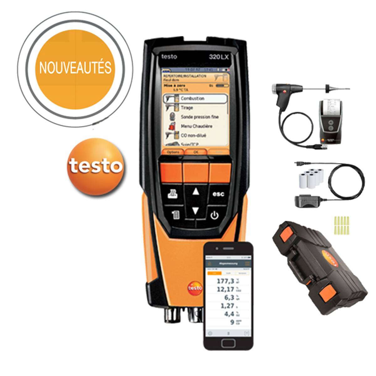 LOT ANALYSEUR DE COMBUSTION TESTO 320 LX (garantie 3 ans)